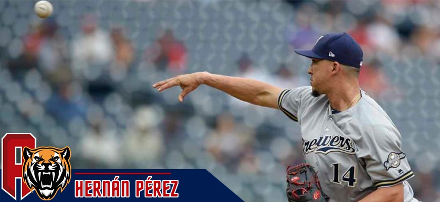 El venezolano Hernán Pérez, utility de los Cerveceros de Milwaukee, volvió a lanzar en Grandes Ligas este domingo, cuando su equipo enfrentó a los Dodgers de los Ángeles y cayeron derrotados 11x2, en el Miller Park.