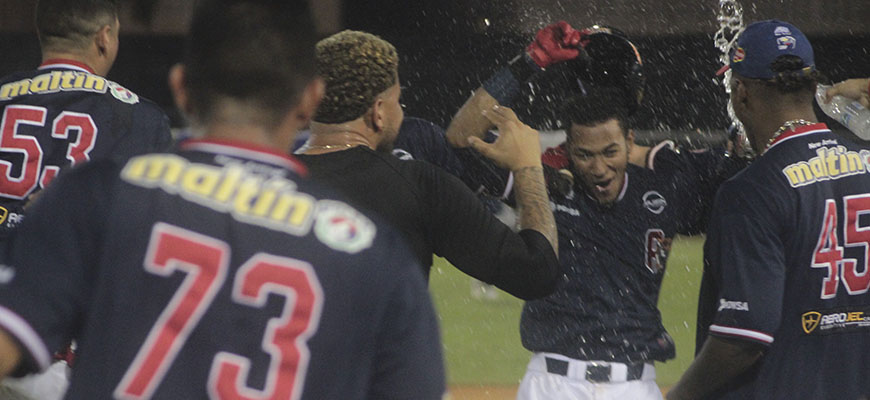 Hasta que en el octavo episodio, ante Julio Pinto, los bates respondieron luego de dos outs con infield hit de Ezequiel Carrera, luego Troy Stokes recibió base por bolas, Franklin Barreto con hit al izquierdo rompió el blanqueo y empujó a Carrera, Henry Rodríguez llenó las bases con sencillo al left field y fue sustituido por Yeltsin Gudiño como corredor emergente. Después, José Vargas igualó la pizarra con elevado de sacrificio al central para que Stokes anotara la segunda del inning.